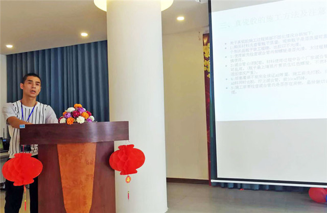 技術(shù)部劉軼麟先生在會上對公司原有產(chǎn)品的改良做了詳細的講解說明,同時發(fā)布了新的產(chǎn)品,還對各種產(chǎn)品施工的細節(jié)與大家做了交流探討。